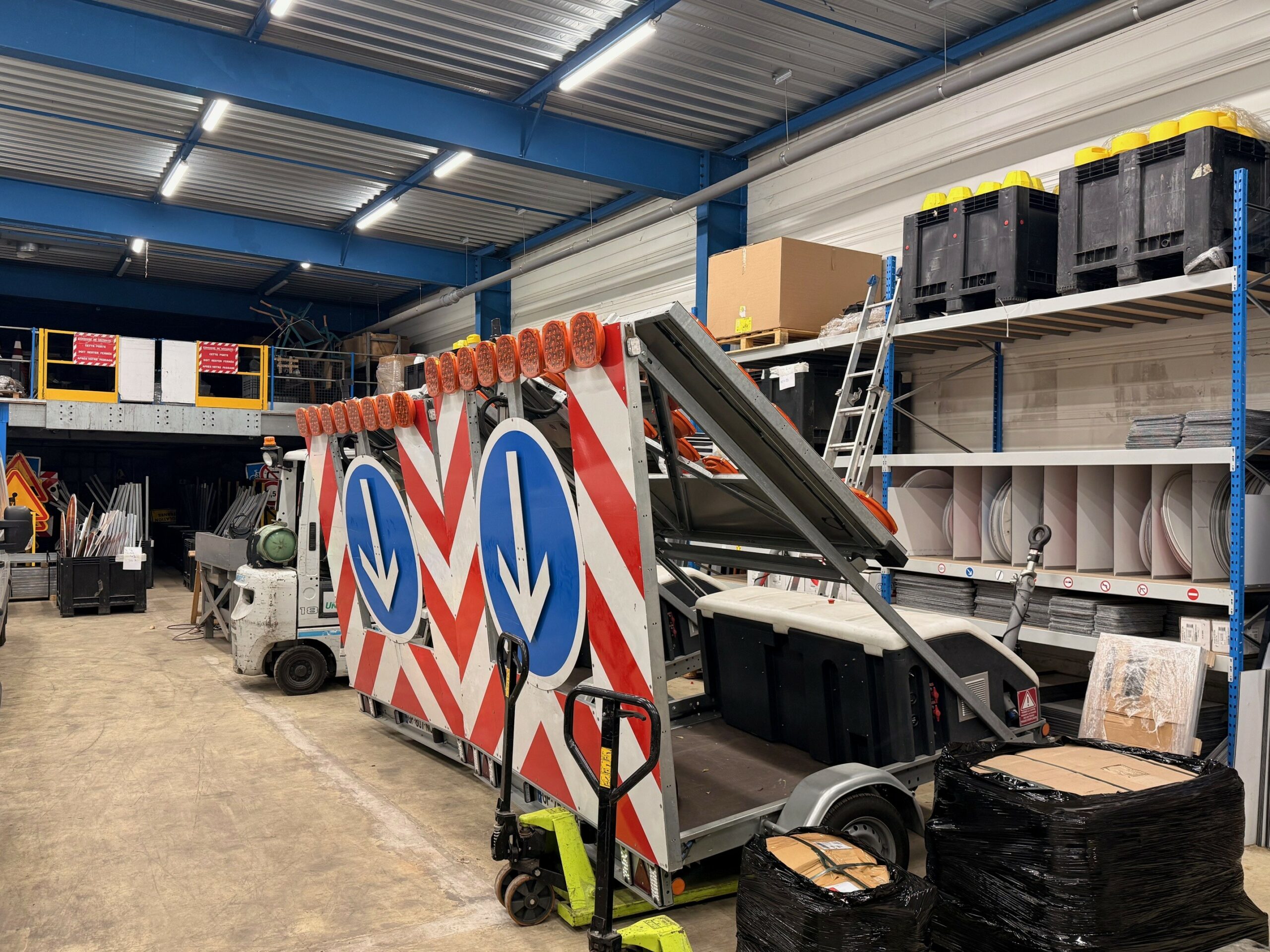 -Feux tricolores de chantier, remorques FLR, flashs défilants.