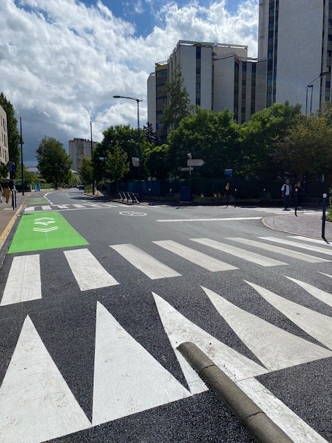 -Travaux de marquage routier définitif (résine thermoplastique, peinture routière, pavés collés).
