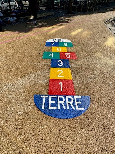 -Fourniture et pose de logos et jeux sportifs en résine thermoplastique.
